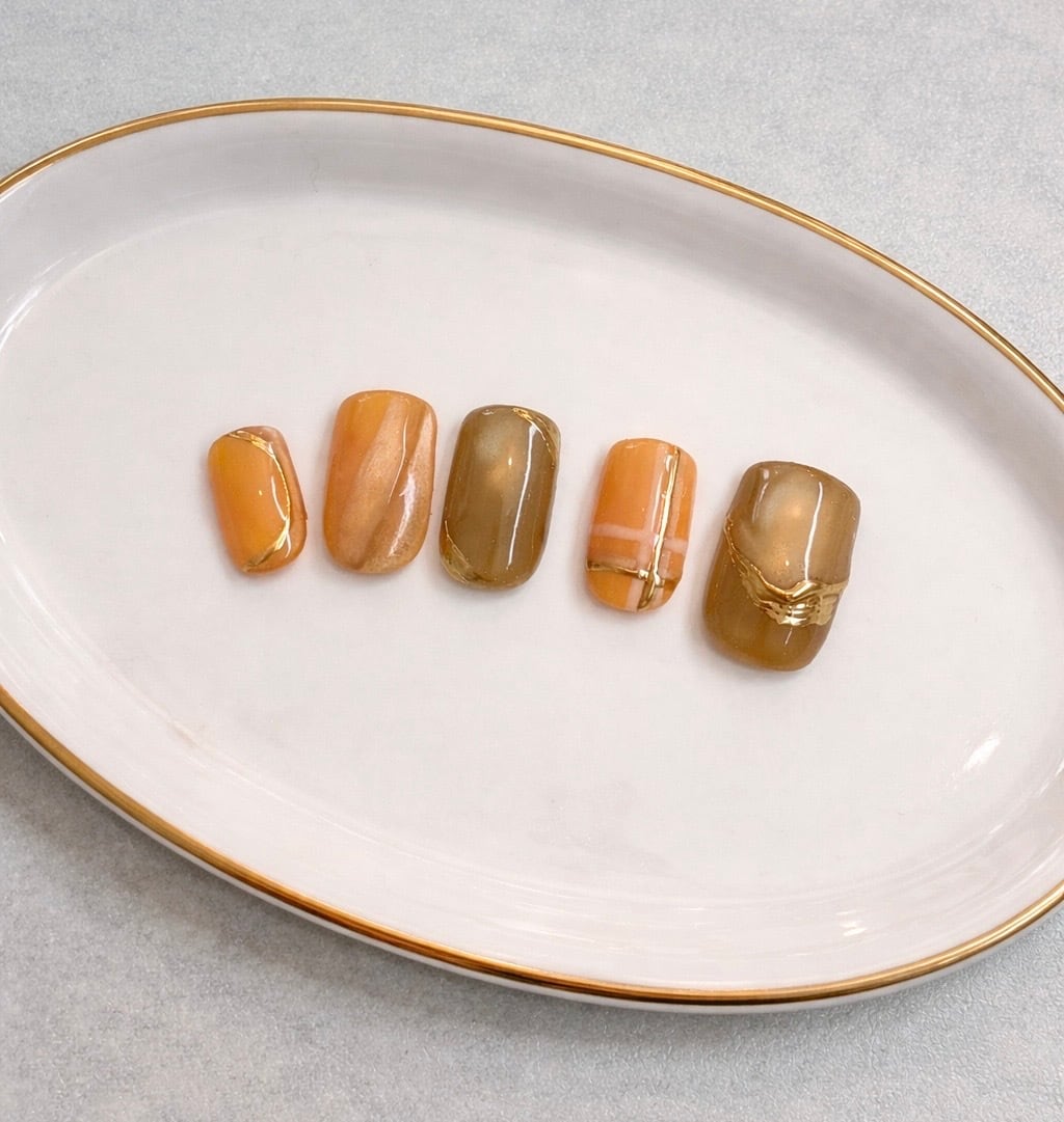 サイズオーダー!キャラメルチェック×マグネットネイルチップ