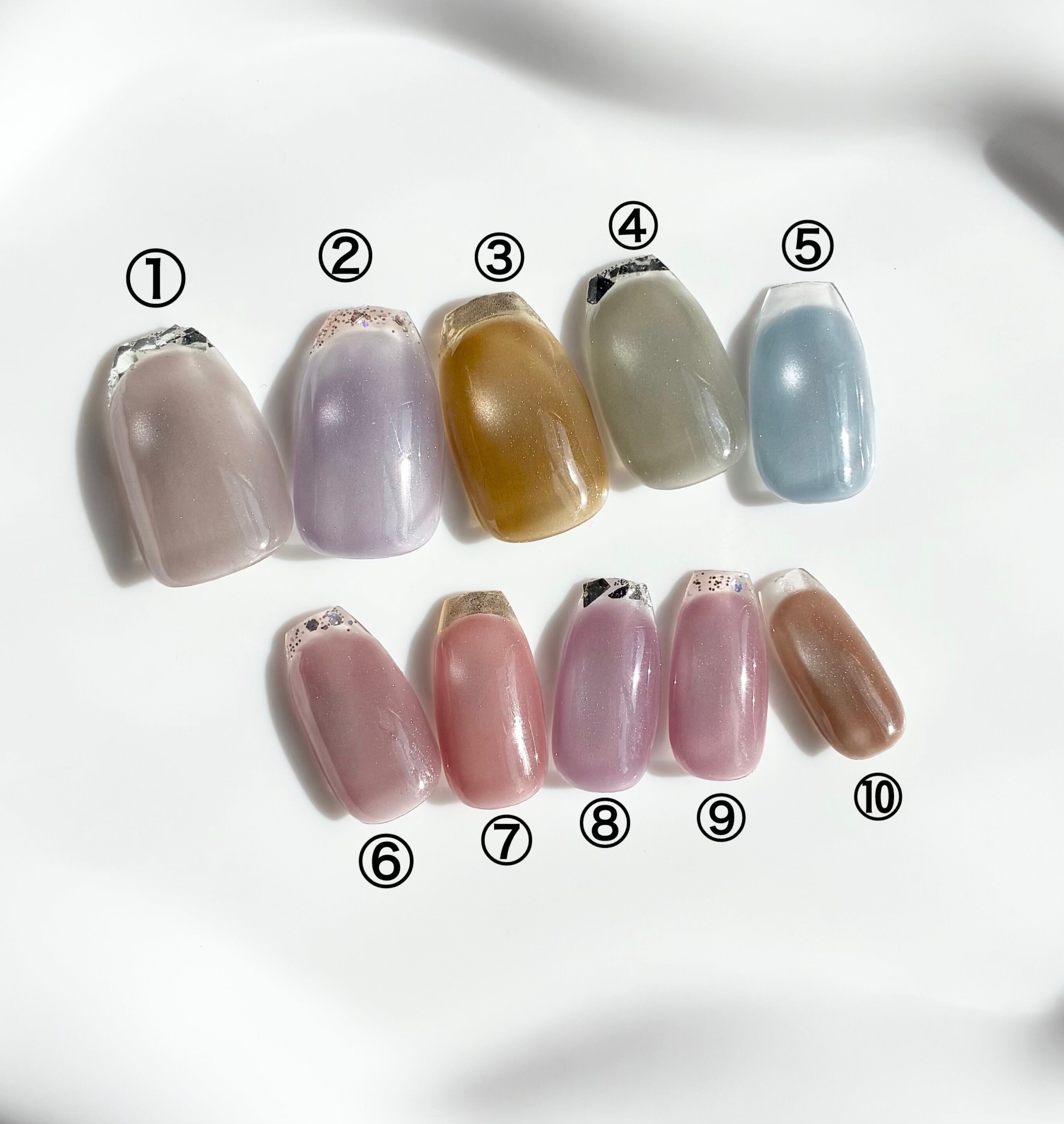 10種類のマグネットカラーに、クリアフレンチ、ミラーフレンチ、ガラスフレンチの3種類のフレンチが選べます。