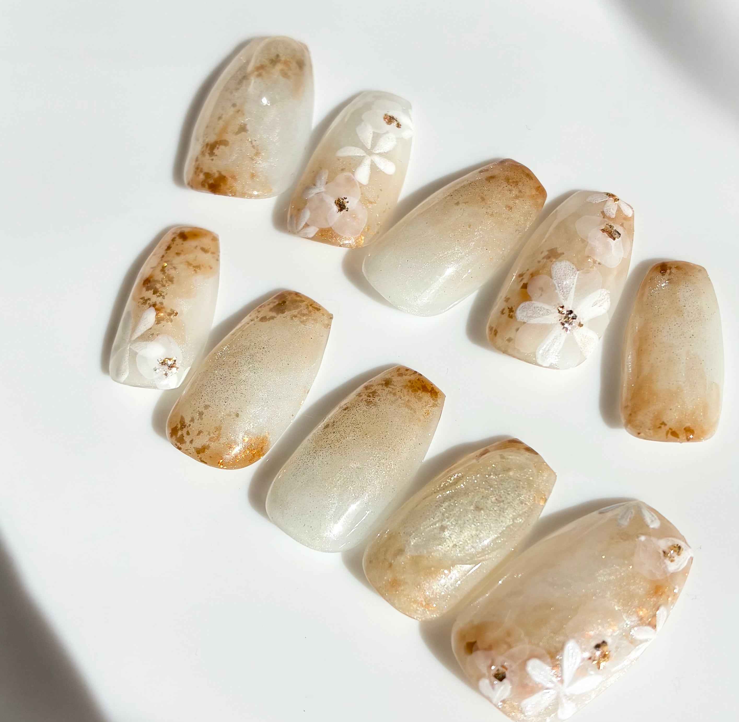 あなたの指先を華やかに彩る特別なアイテムです。美しいフラワーモチーフが、まるで指先から花が咲き誇るような優雅さを演出します。自分の好みに合わせてサイズオーダーできることで、完璧にフィットするネイルチップをお楽しみいただけます!