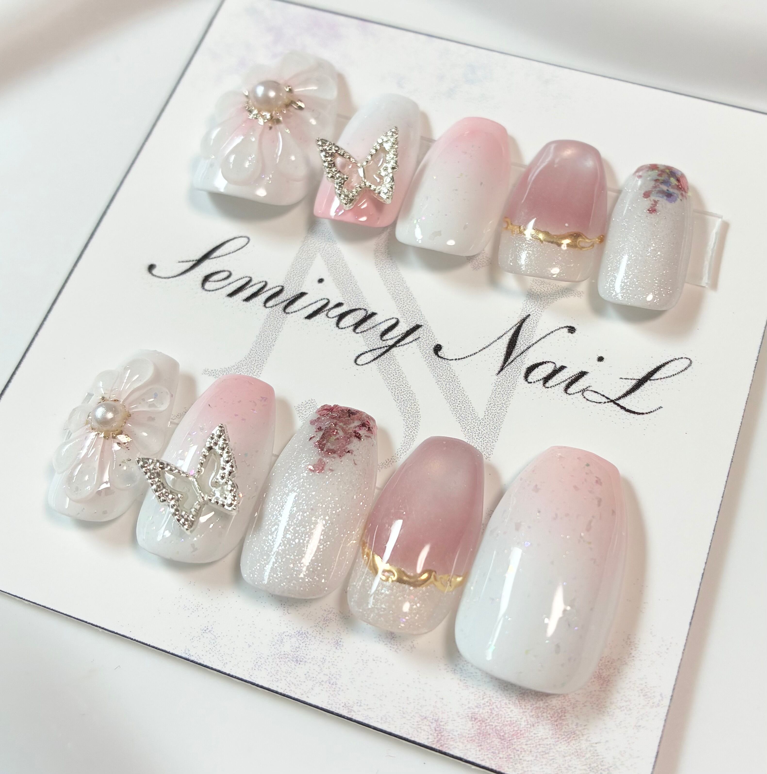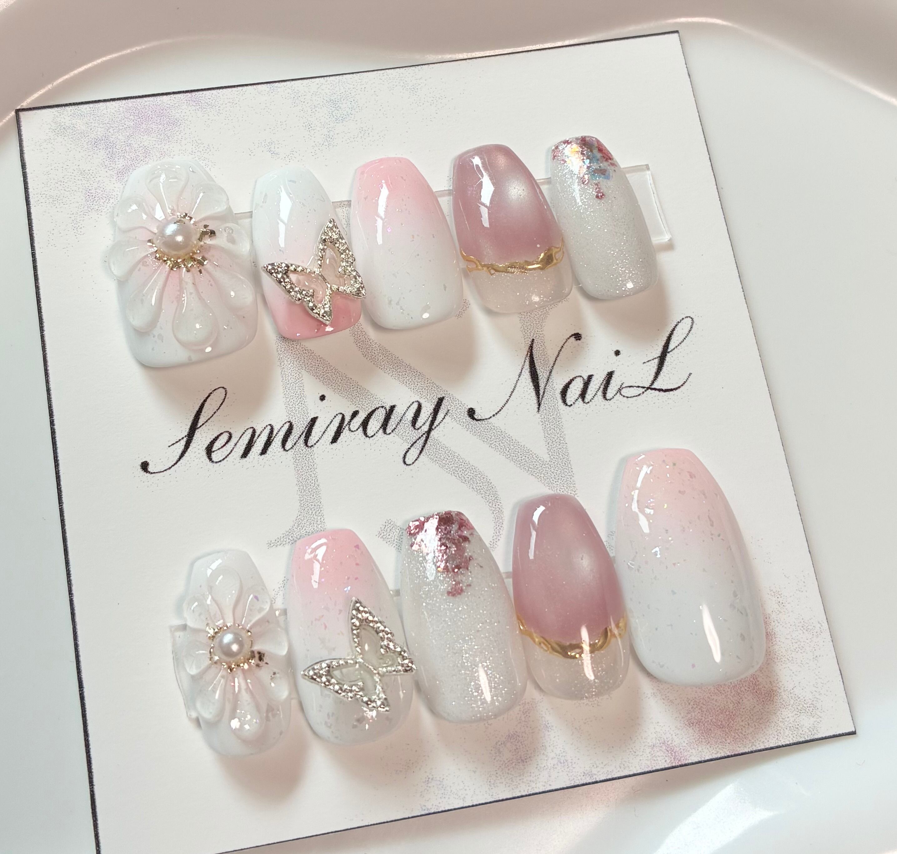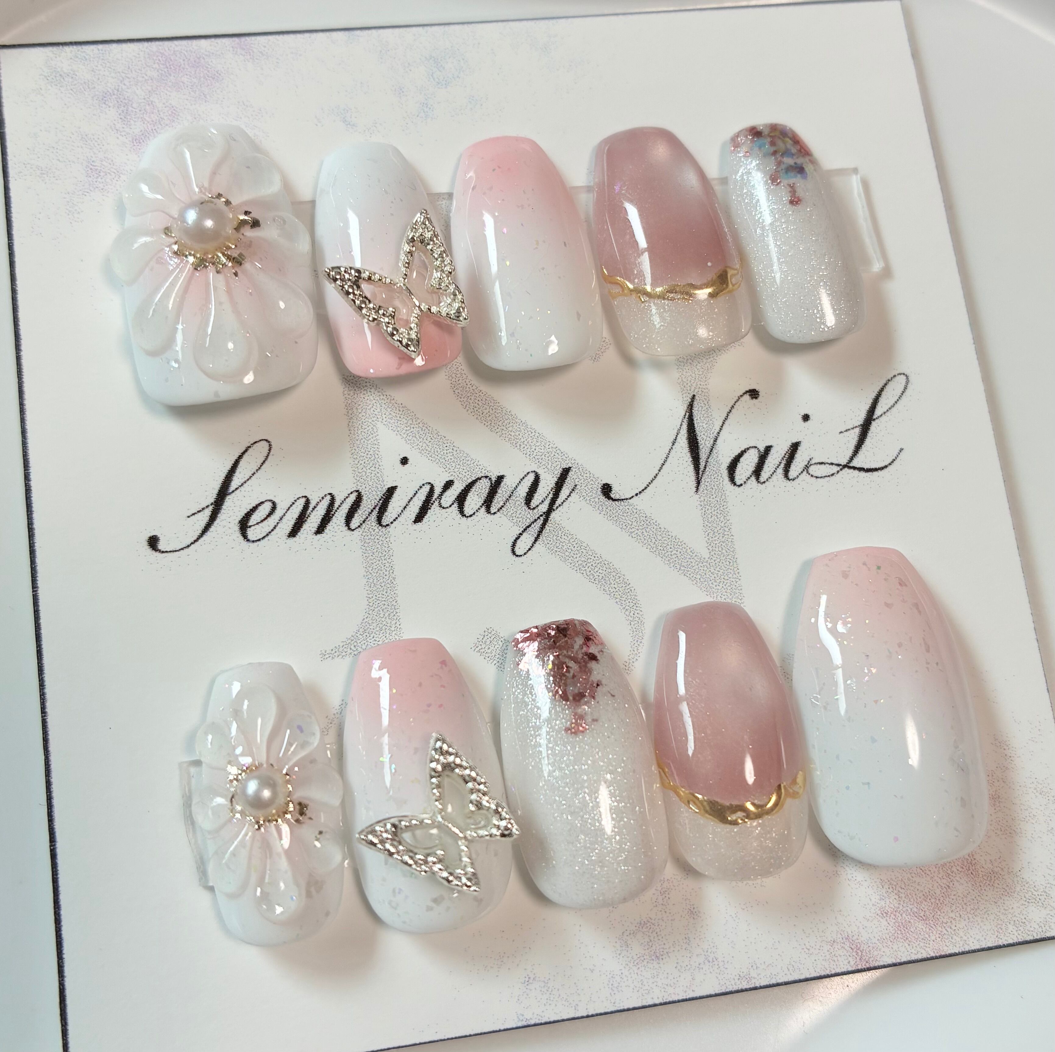 サイズオーダー!ぷっくりフラワーネイル!バタフライピンク